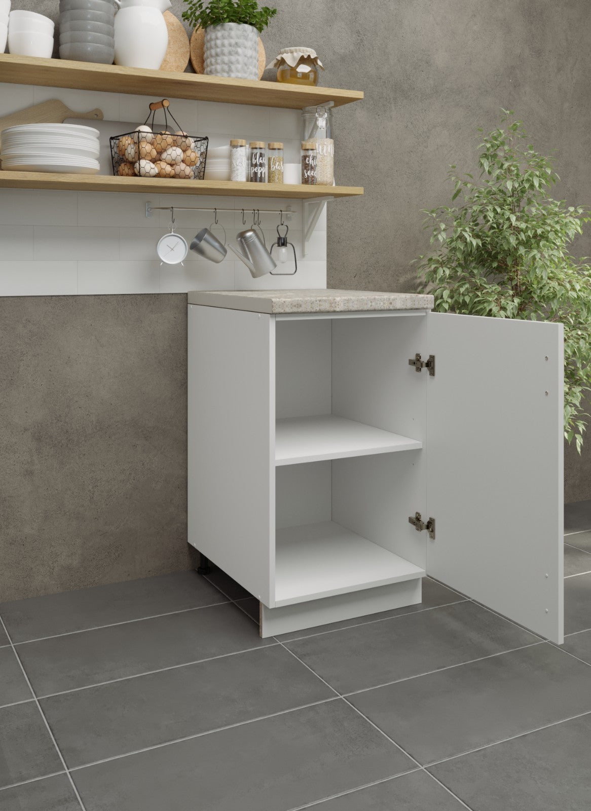 JD Greta Adjustable Kitchen Base Unit 500mm - White Matt (With Worktop)