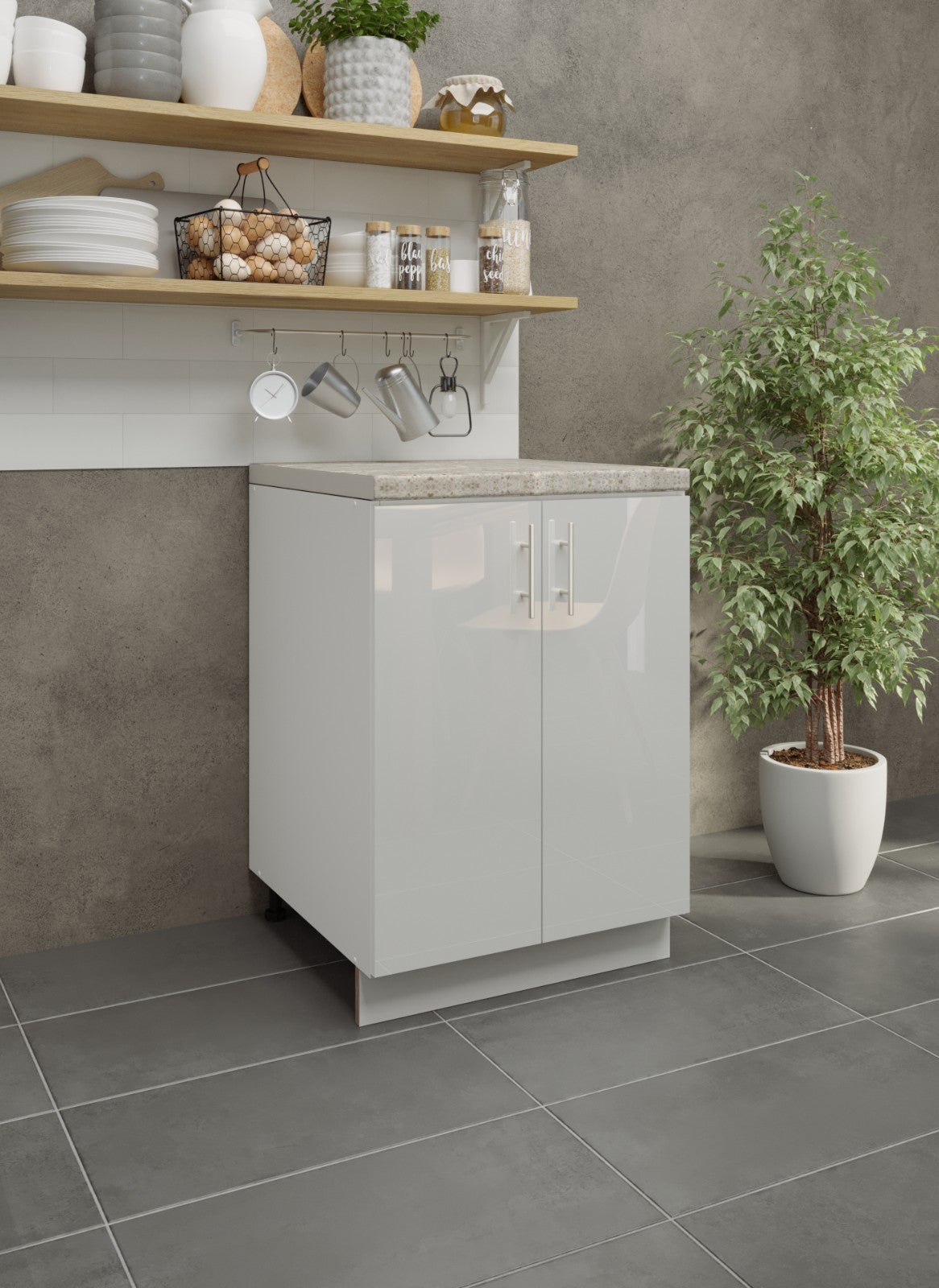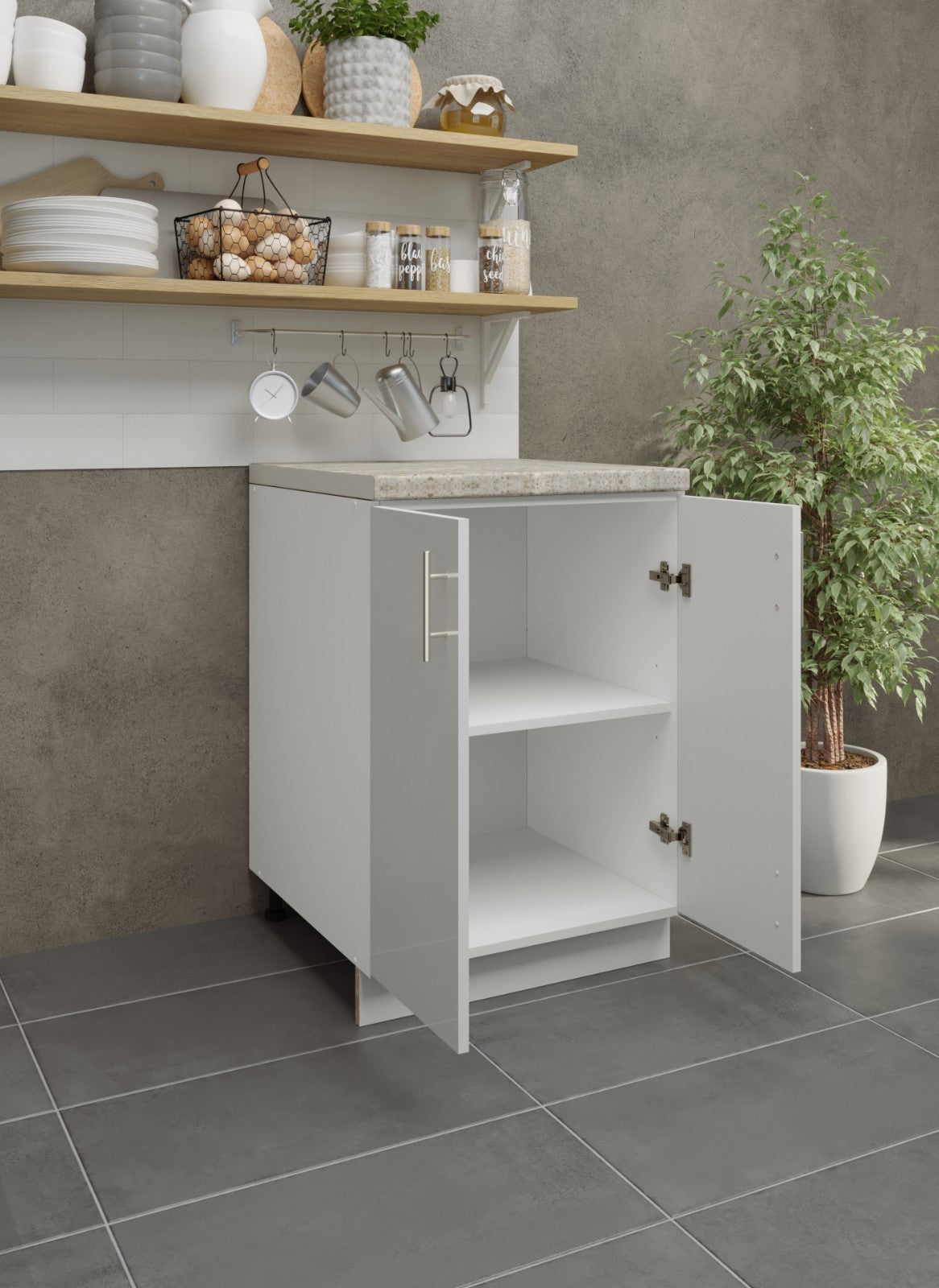 JD Greta Adjustable Kitchen Base Unit 600mm - White Gloss (With Worktop)
