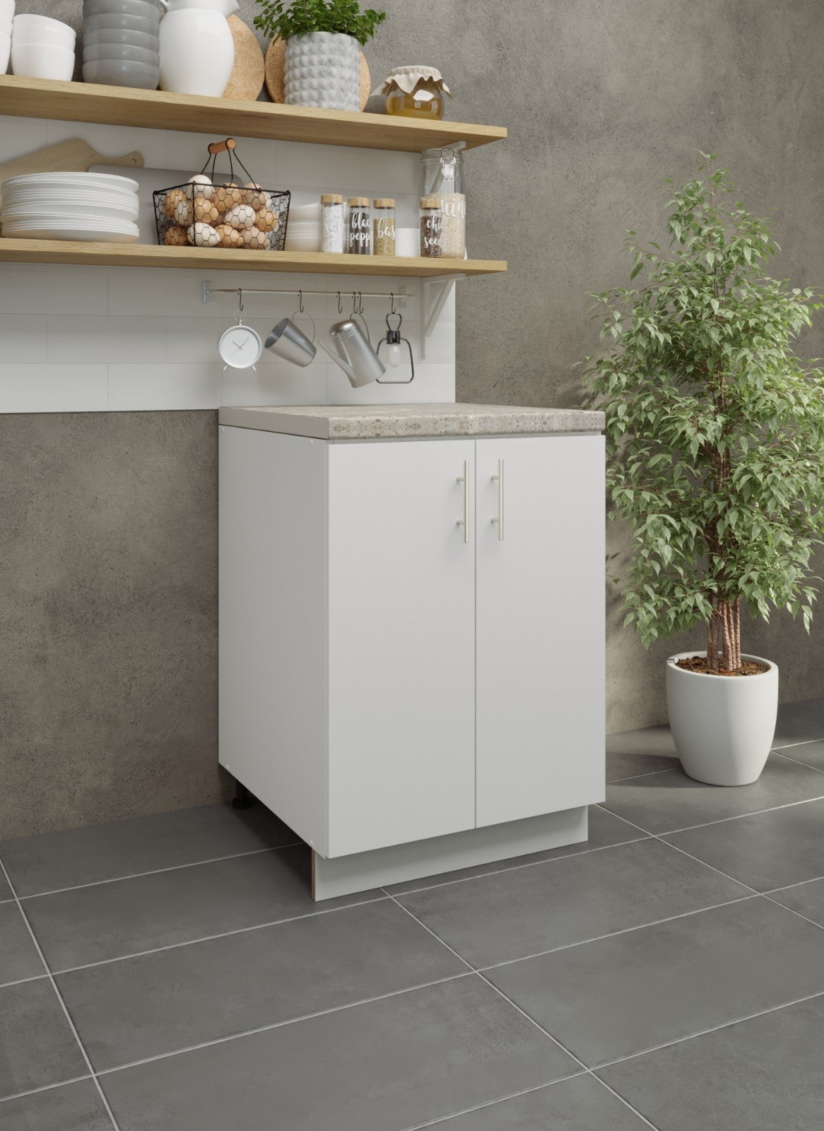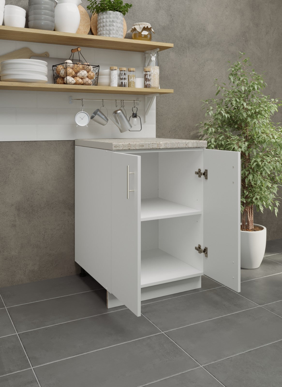 JD Greta Adjustable Kitchen Base Unit 600mm - White Matt (With Worktop)