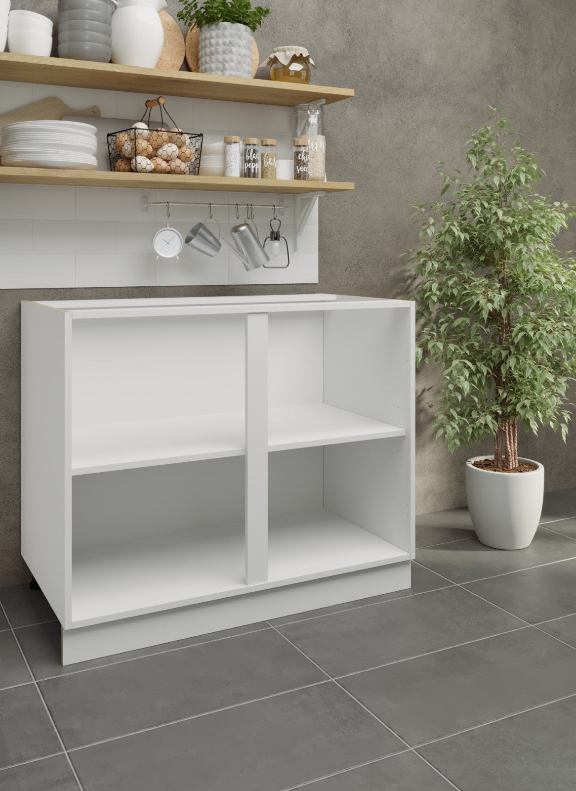 JD Greta Adjustable Legs Kitchen Base Unit 1000mm - White Matt (No door)