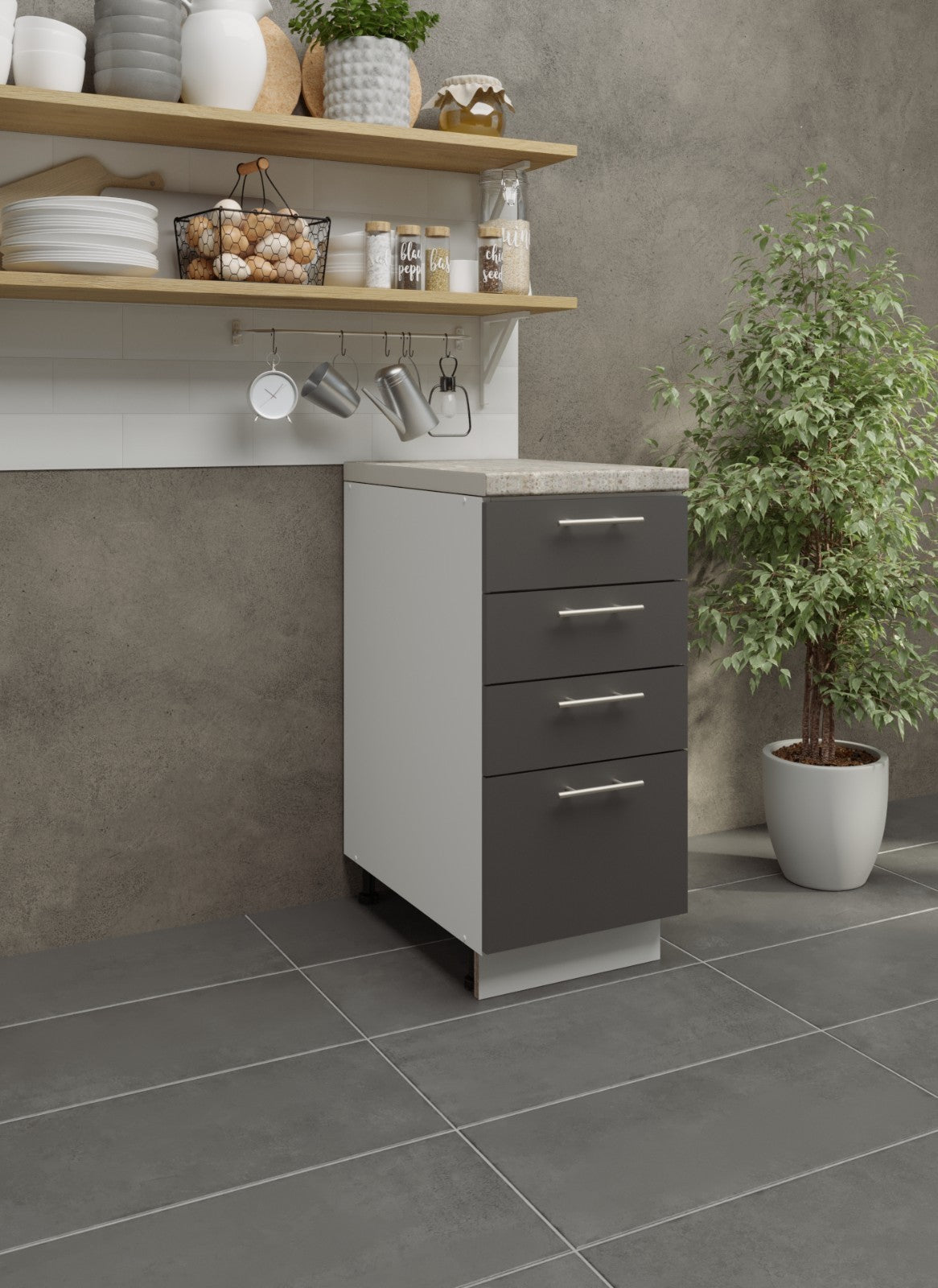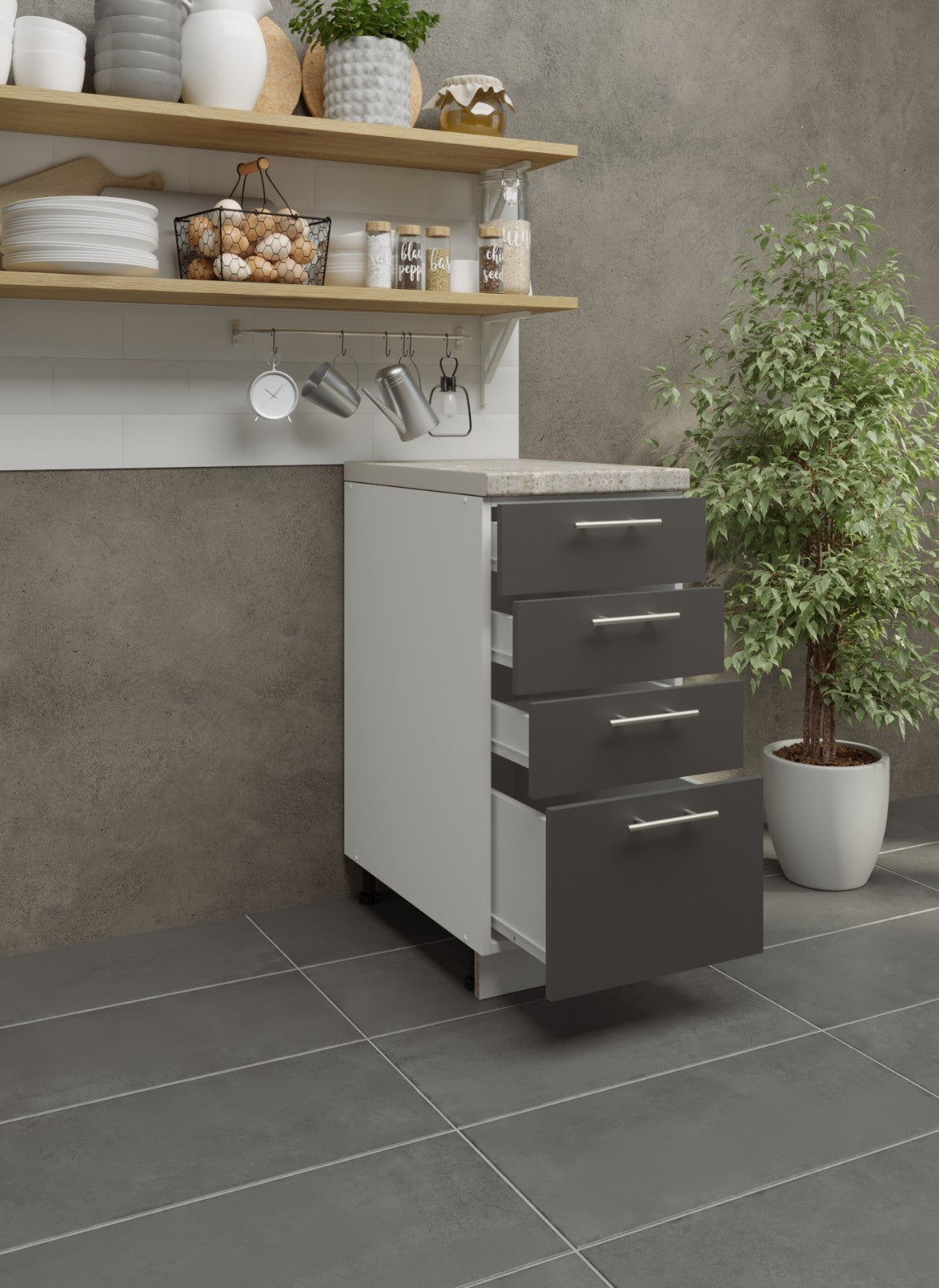 JD Greta Adjustable Legs Kitchen Drawer Unit 400mm - Dark Grey (With Worktop)