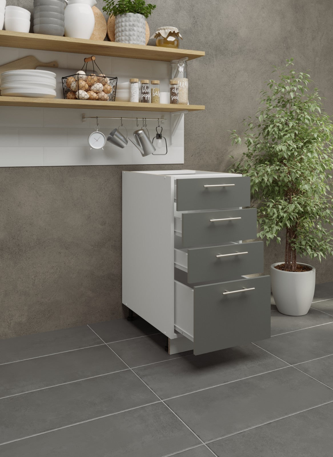 JD Greta Adjustable Legs Kitchen Drawer Unit 400mm - Grey Matt