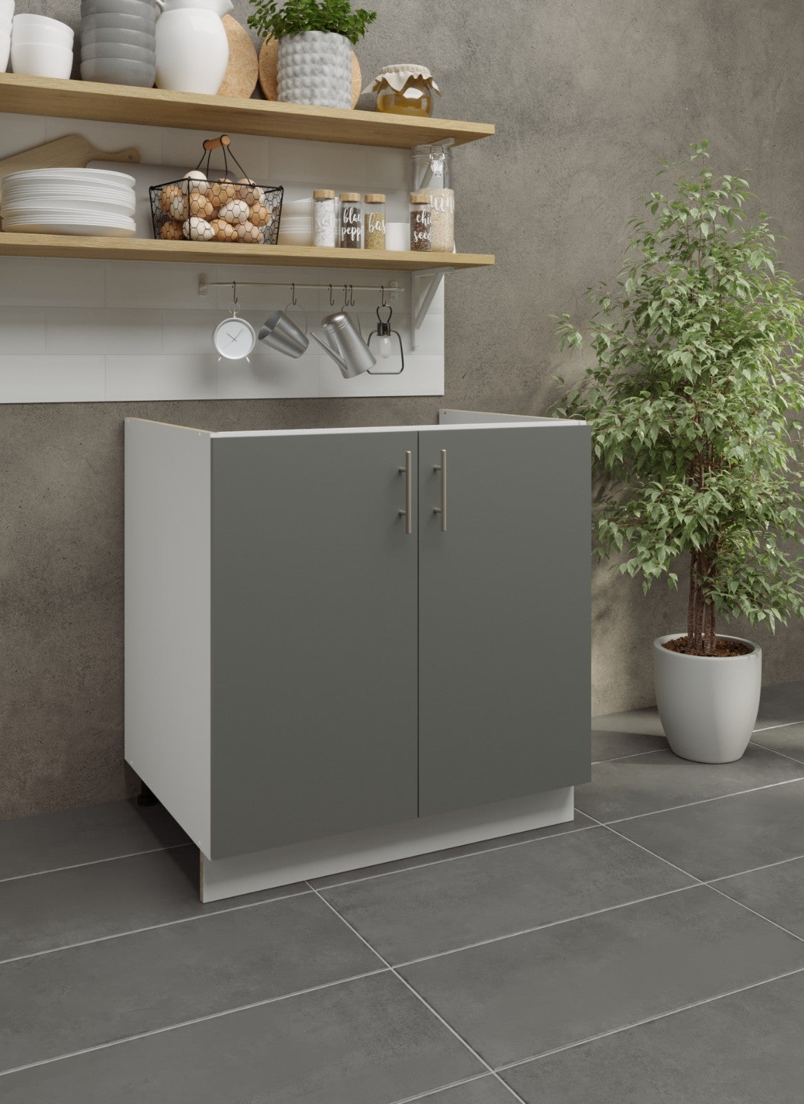 JD Greta Adjustable Legs Kitchen Sink Unit 800mm - Grey Matt