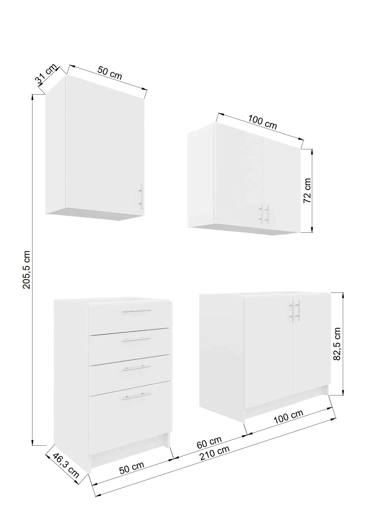 JD Greta Fixed Height 210cm 4 Piece Complete Kitchen - Dark Grey Matt