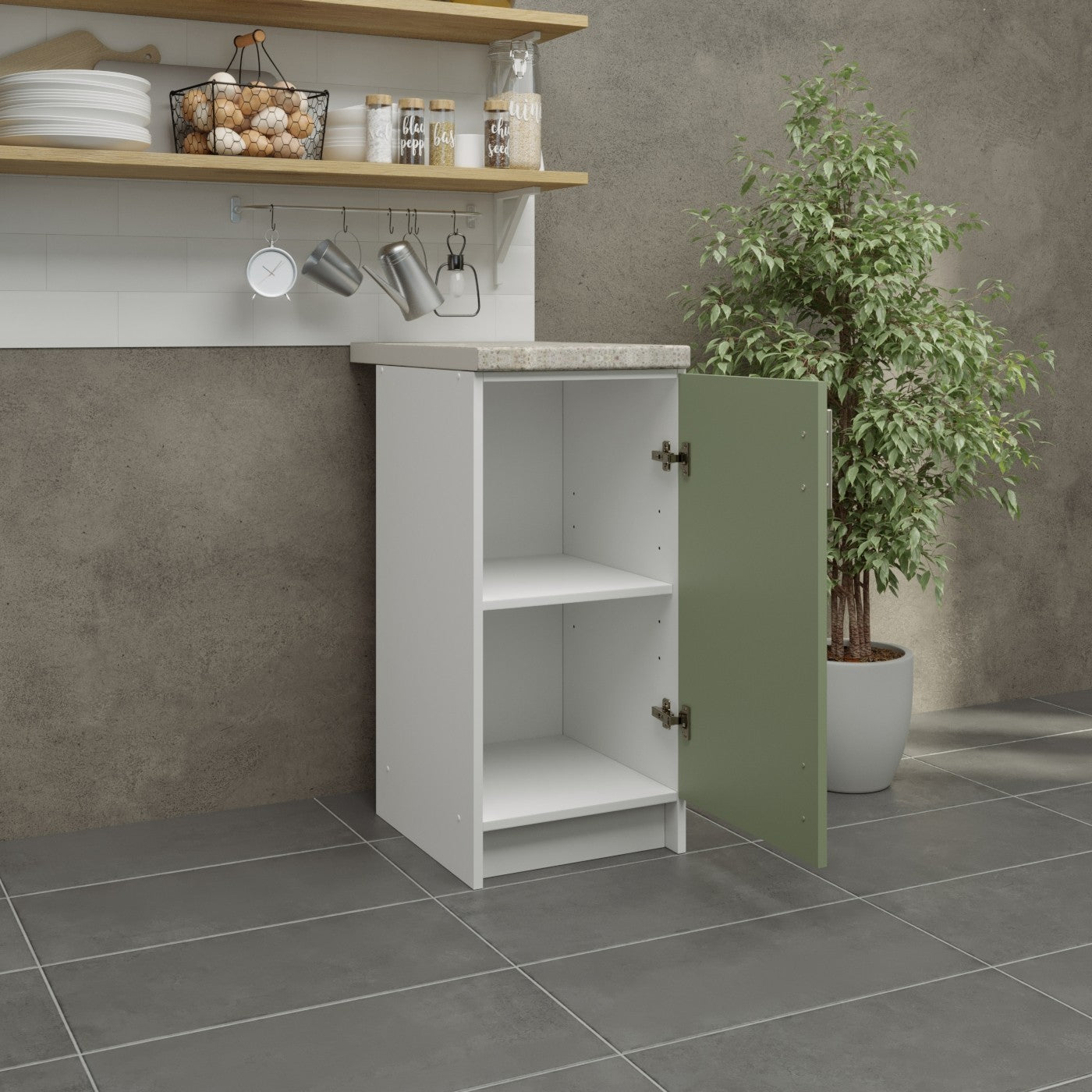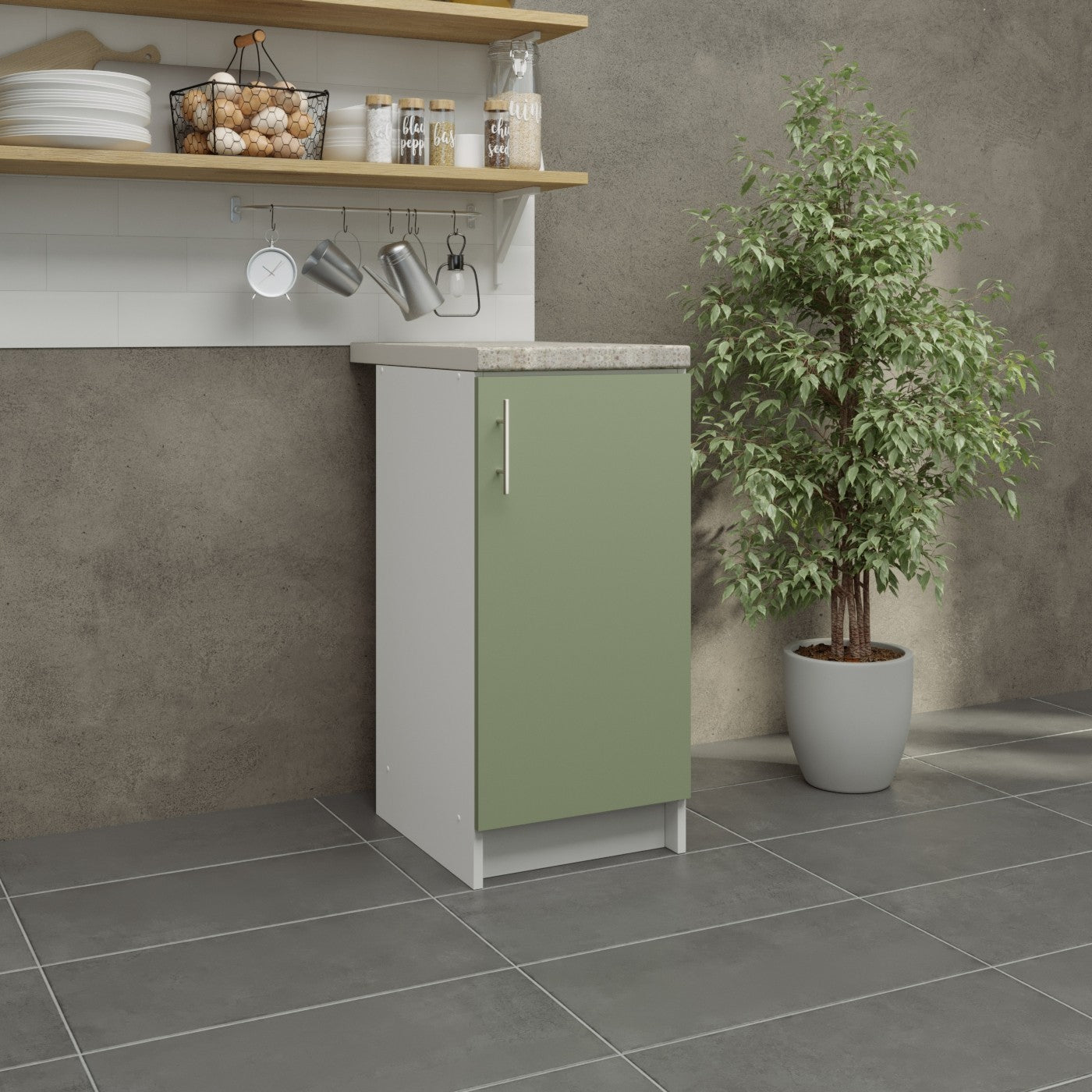 JD Greta Fixed Height Kitchen Base Unit 400mm - Sage Green Matt With Worktop