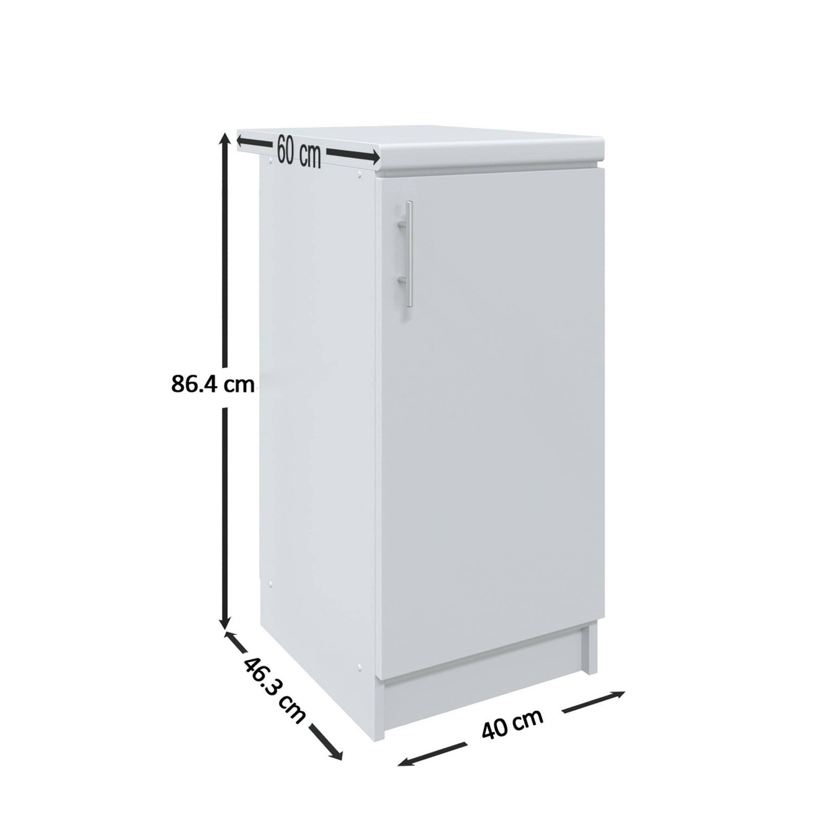 We offer two size options for base cabinets. The non-adjustable version is shorter and less deep, while the adjustable version closely matches UK standard dimensions.