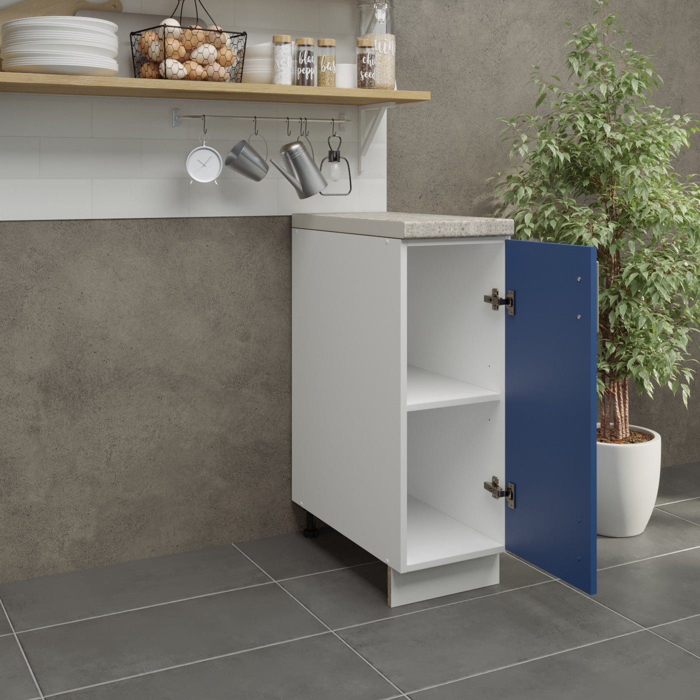 JD Greta Kitchen Adjustable 300mm Base Cabinet - Navy Matt with Worktop