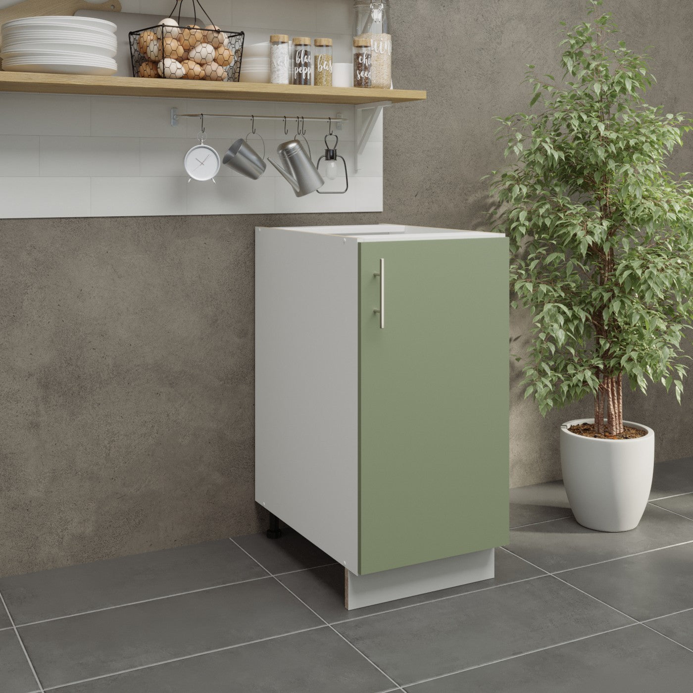 JD Greta Kitchen Adjustable 400mm Base Cabinet - Sage Green Matt
