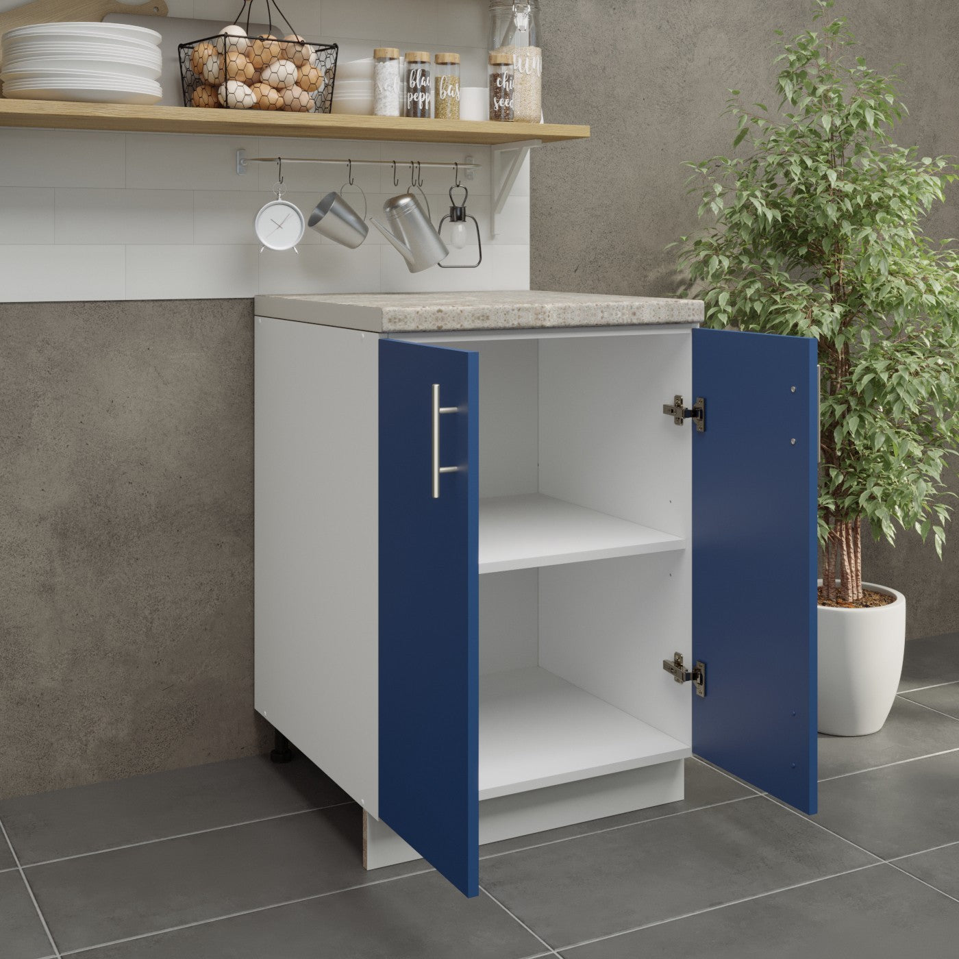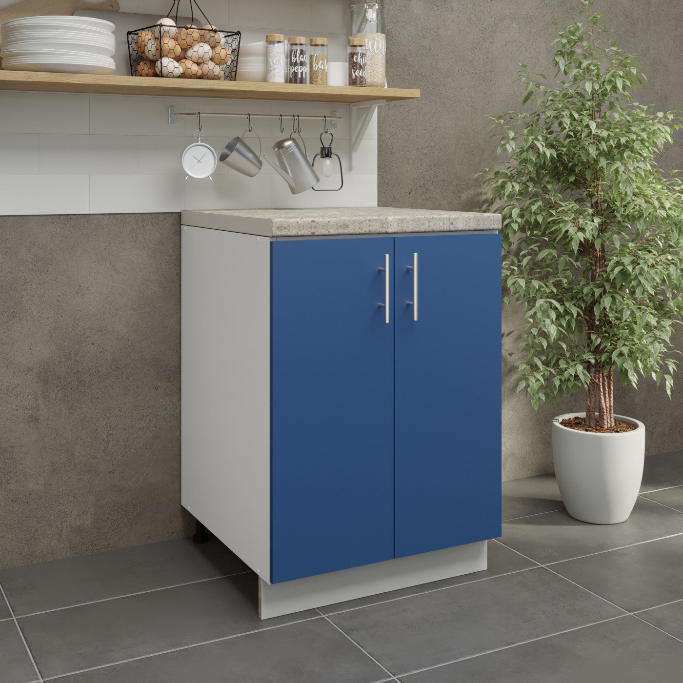 JD Greta Kitchen Adjustable 600mm Base Cabinet - Navy Matt with Worktop