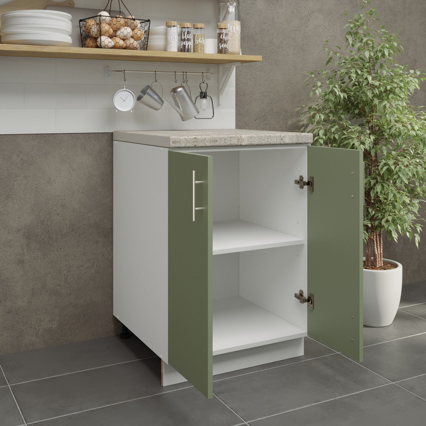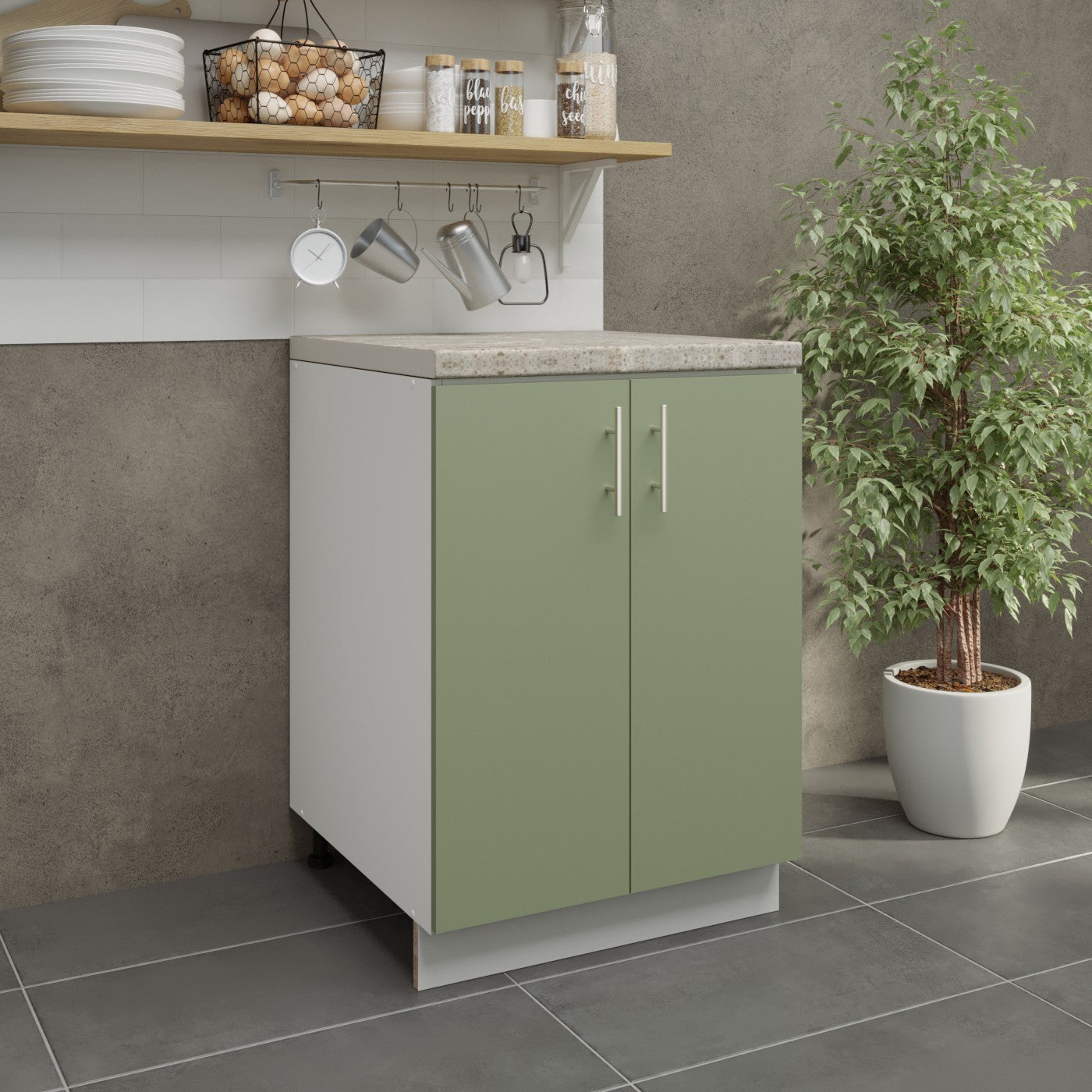 JD Greta Kitchen Adjustable 600mm Base Cabinet - Sage Green Matt with Worktop