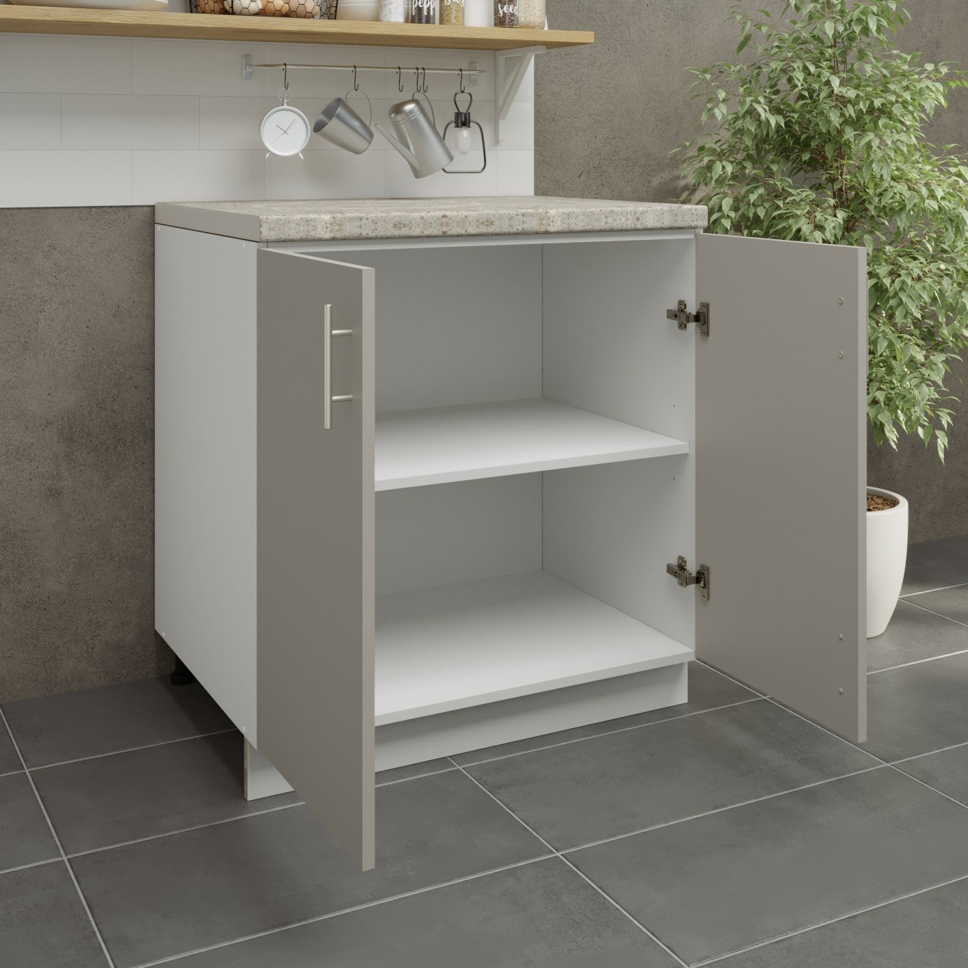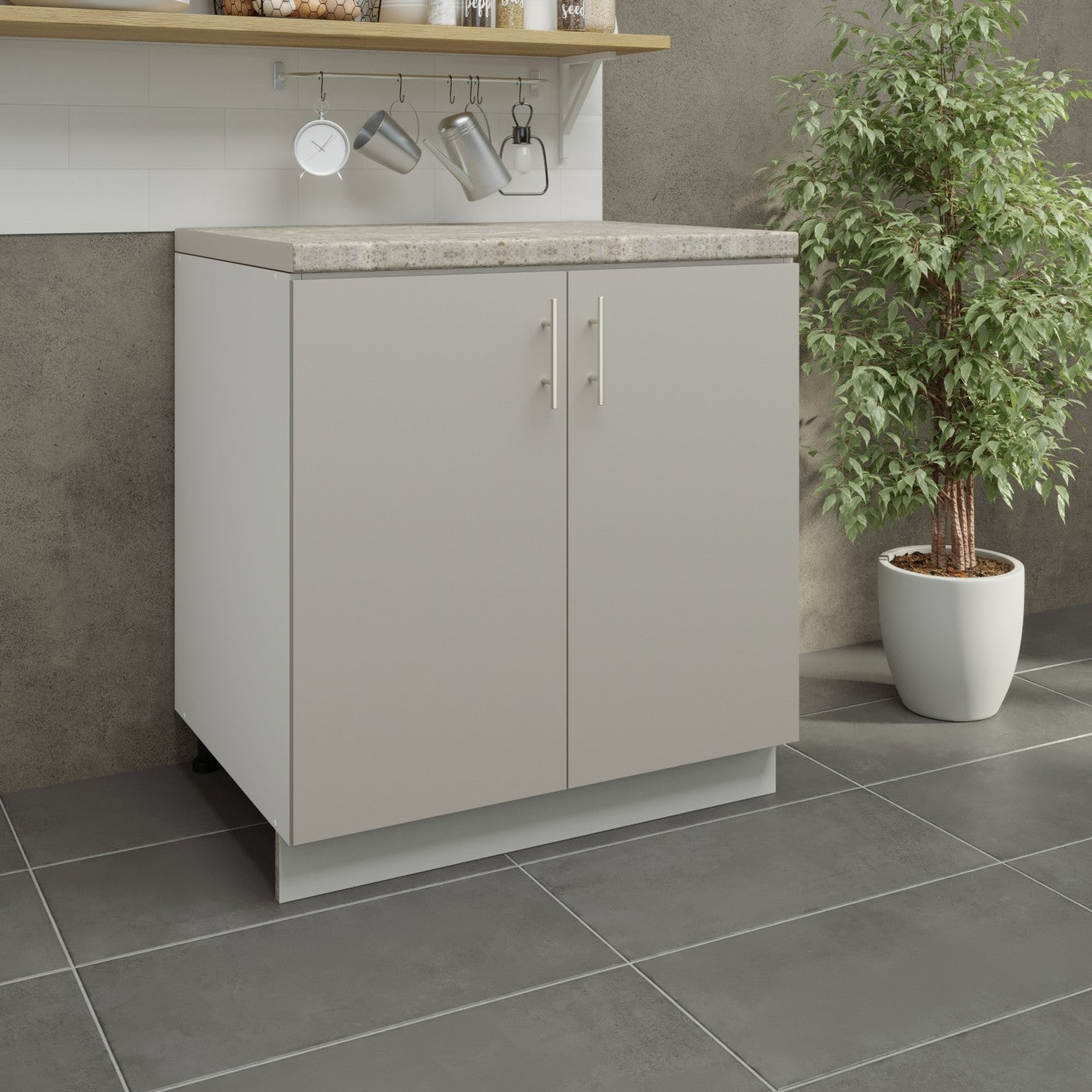 JD Greta Kitchen Adjustable 800mm Base Cabinet - Cashmere Matt with Worktop