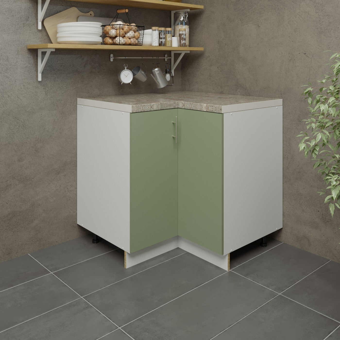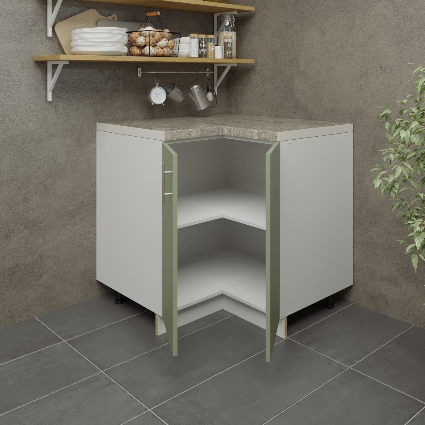 JD Greta Kitchen Adjustable 900mm Corner Cabinet - Sage Green Matt with Worktop