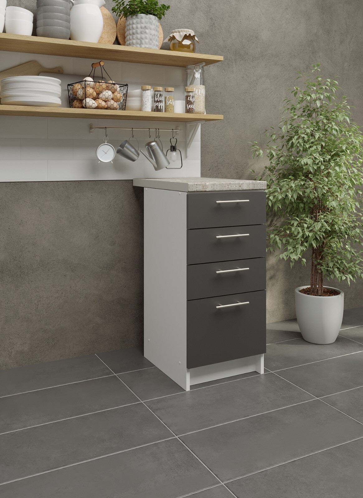 JD Greta Fixed Height Kitchen Base Drawer Unit 400mm Cabinet - Dark Grey (With Worktop)