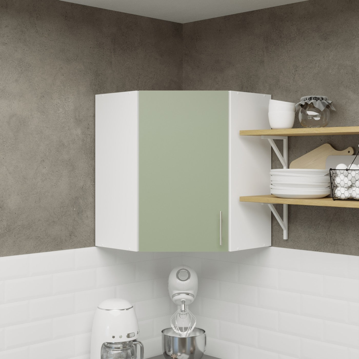 JD Greta Kitchen Wall Corner Unit 600mm Cabinet With Door 60cm - Sage Green Matt