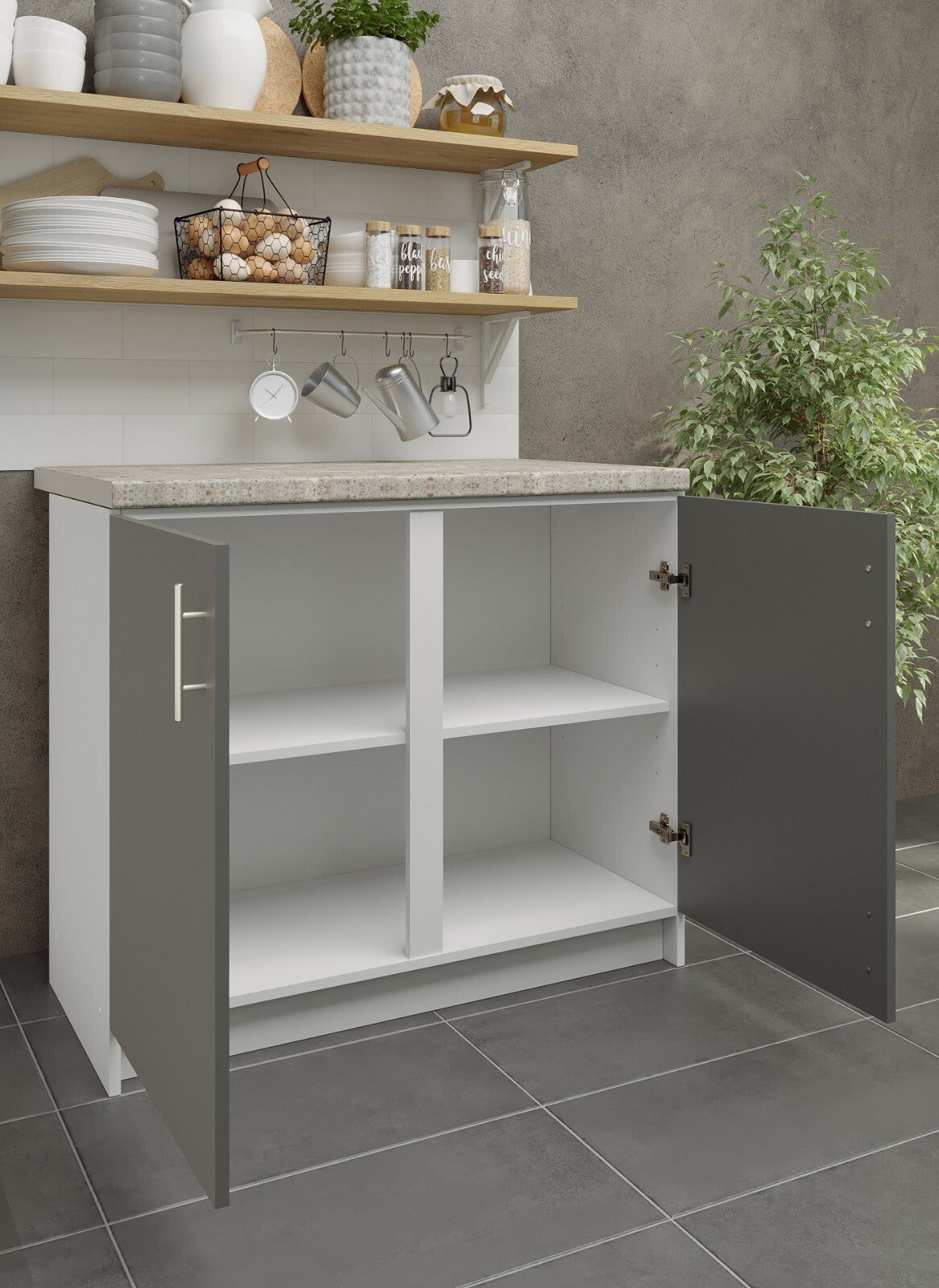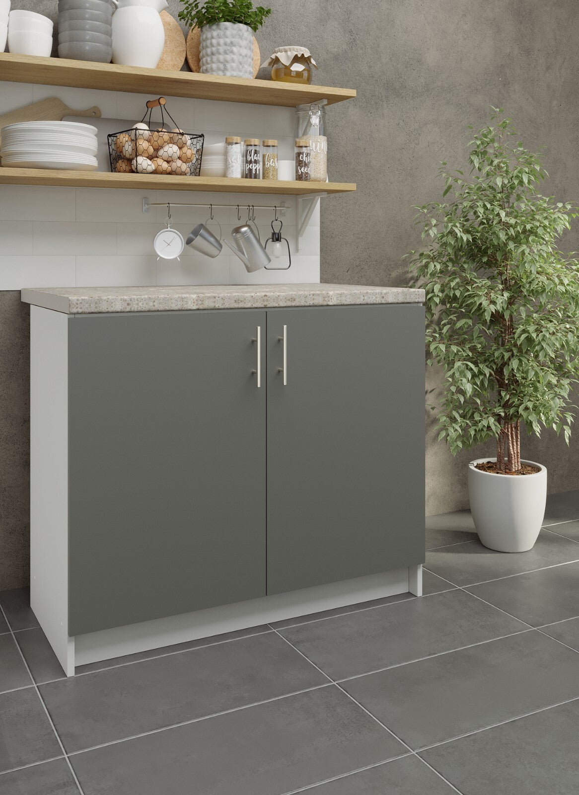 JD Greta Fixed Height Kitchen Base Unit 1000mm - Grey Matt (With Worktop)