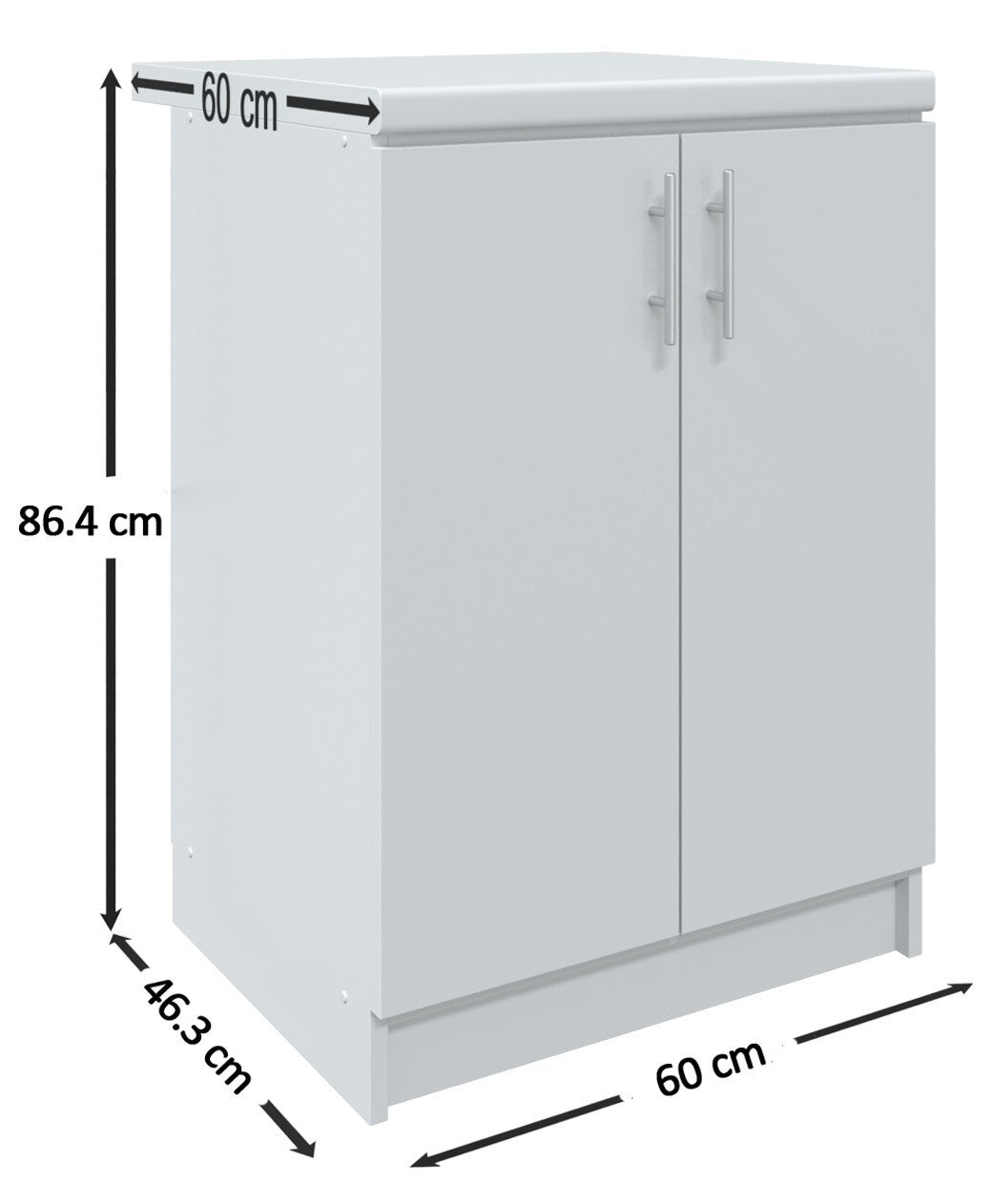 We offer two size options for base cabinets. The non-adjustable version is shorter and less deep, while the adjustable version closely matches UK standard dimensions.