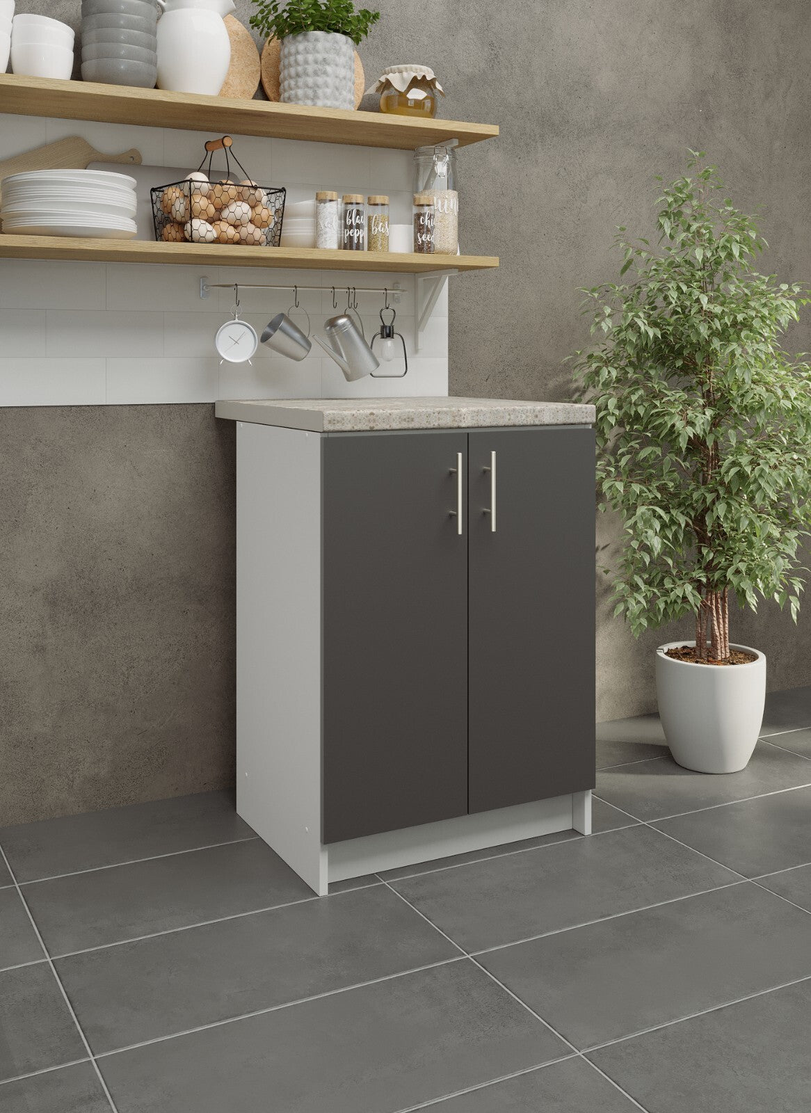 JD Greta Fixed Height Kitchen Base Unit 600mm -Dark Grey Matt (With Worktop)