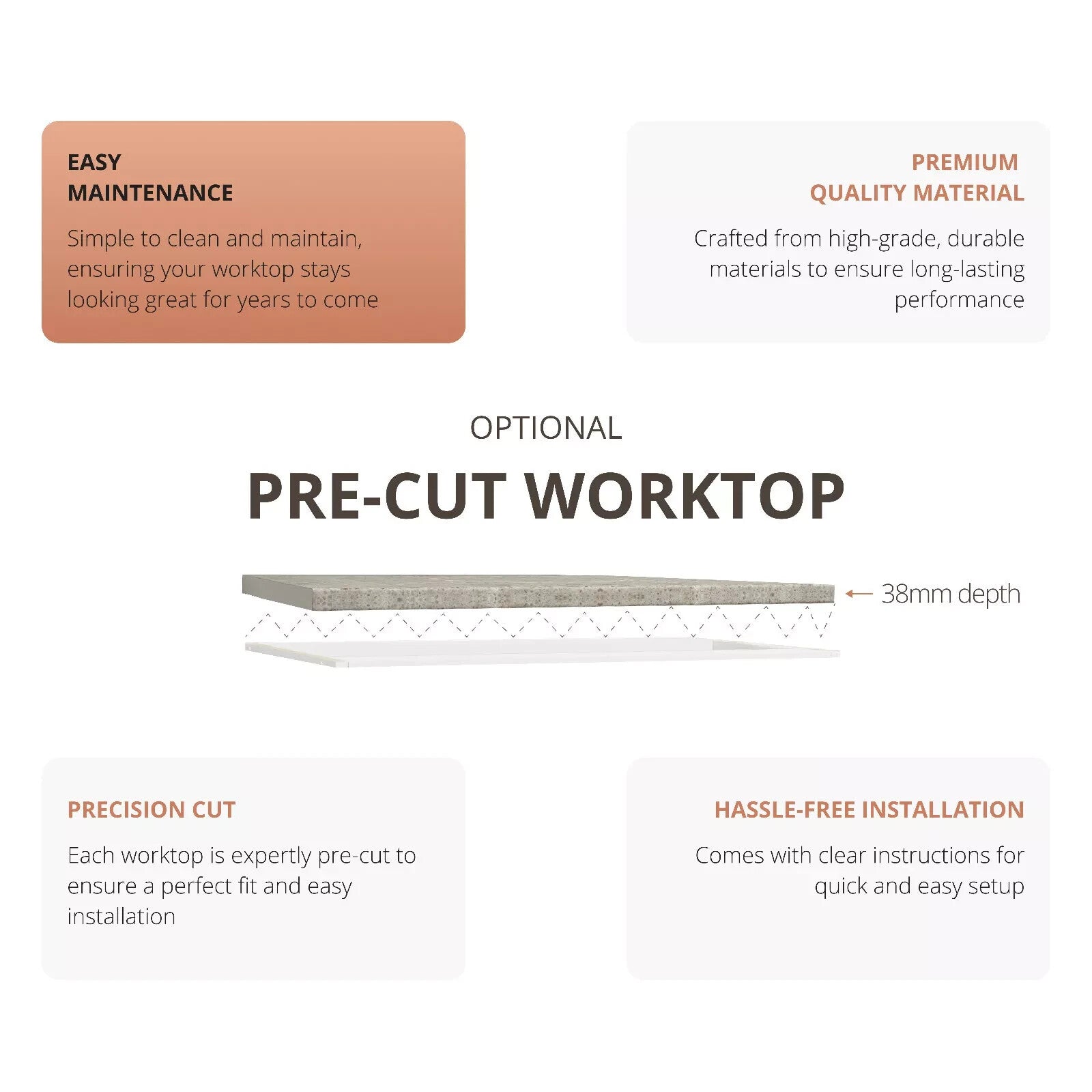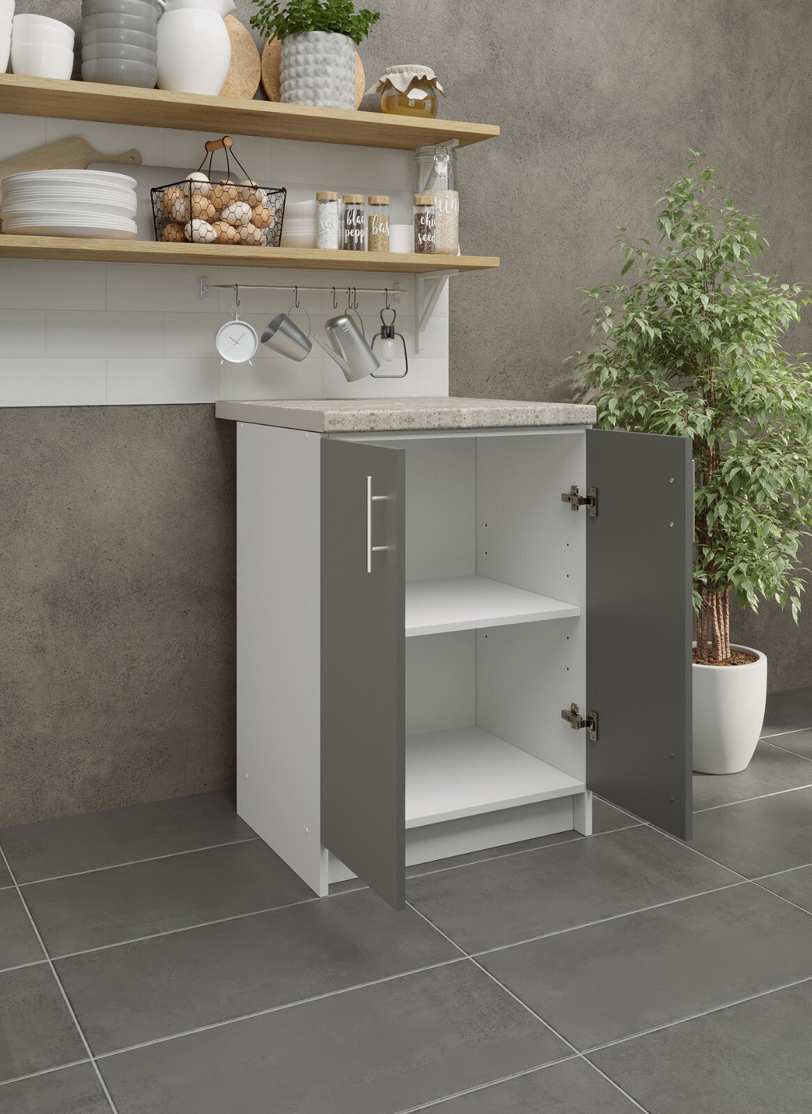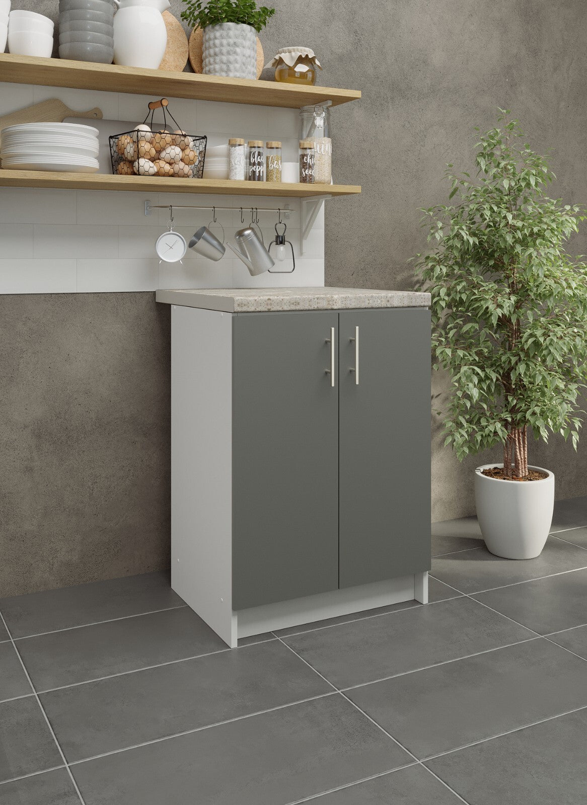 JD Greta Fixed Height Kitchen Base Unit 600mm - Grey Matt (With Worktop)