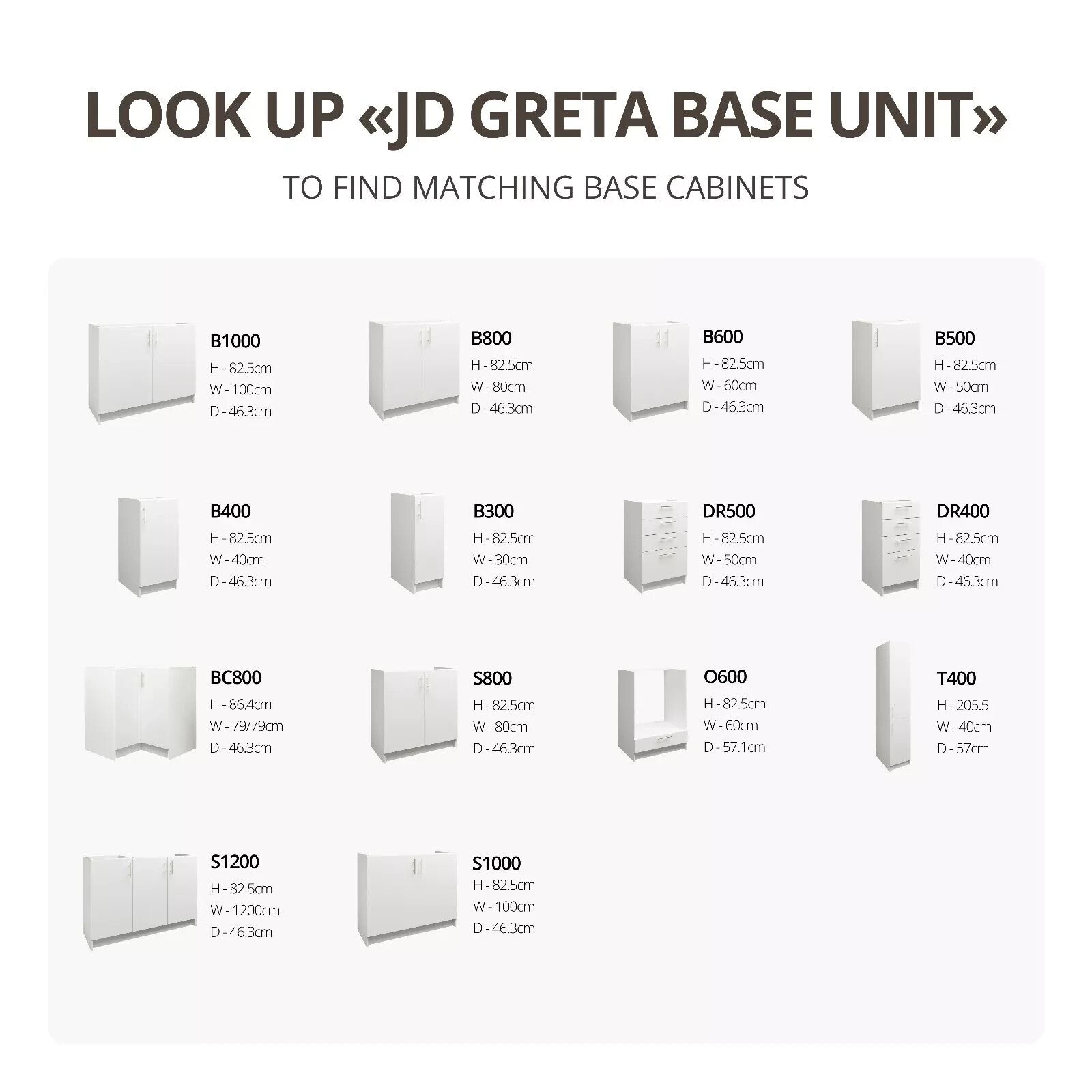 JD Greta base cabinets are available in two options: adjustable and fixed. You can choose the one that best suits your needs.