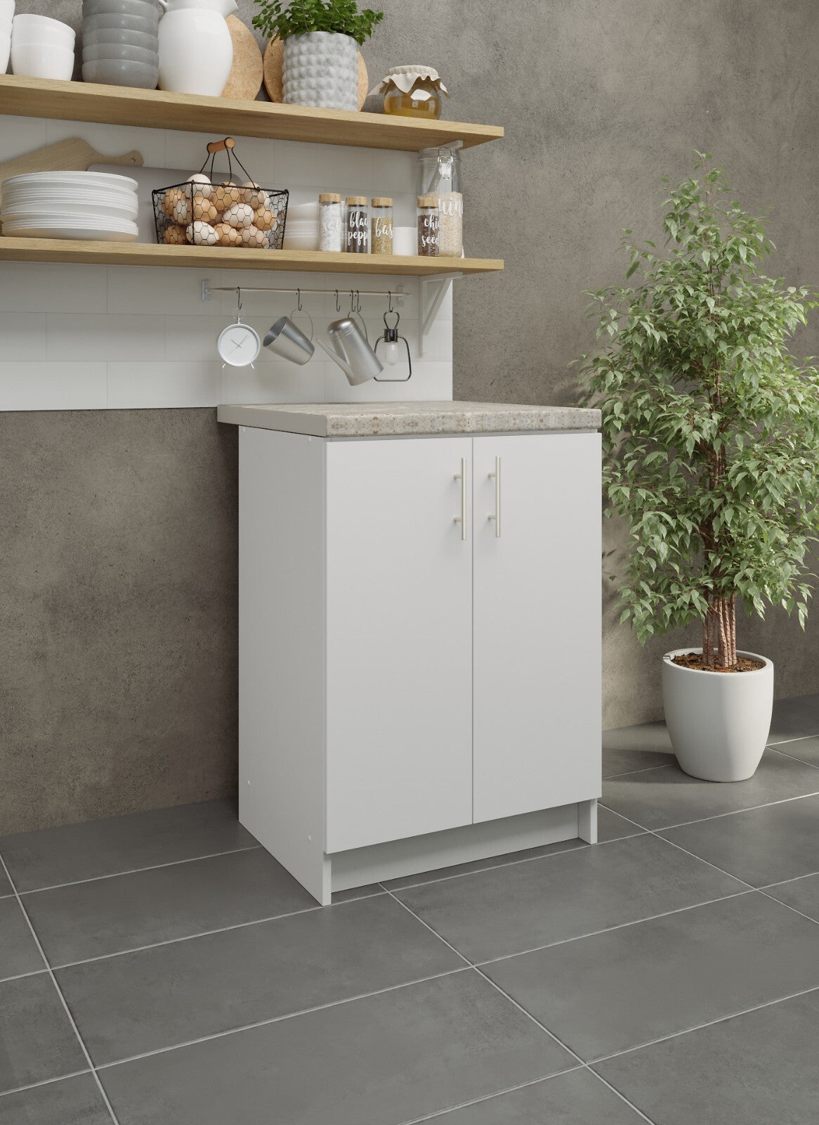 JD Greta Fixed Height Kitchen Base Unit 600mm - White Matt (With Worktop)