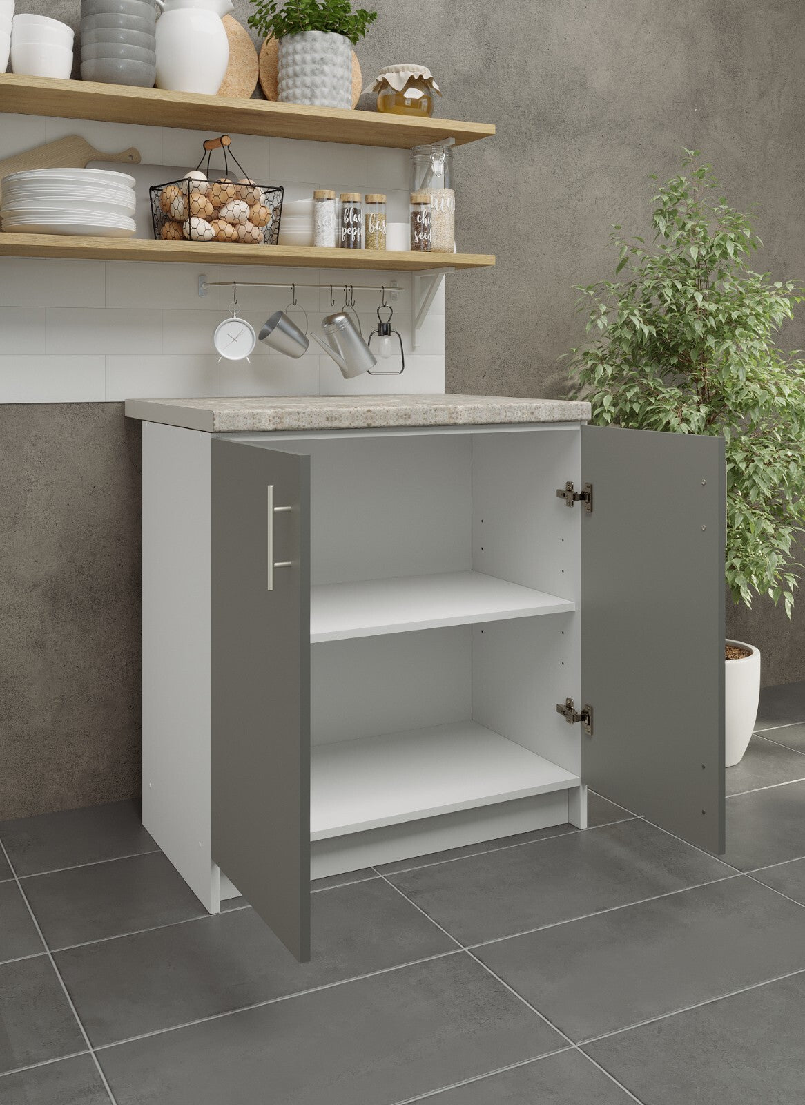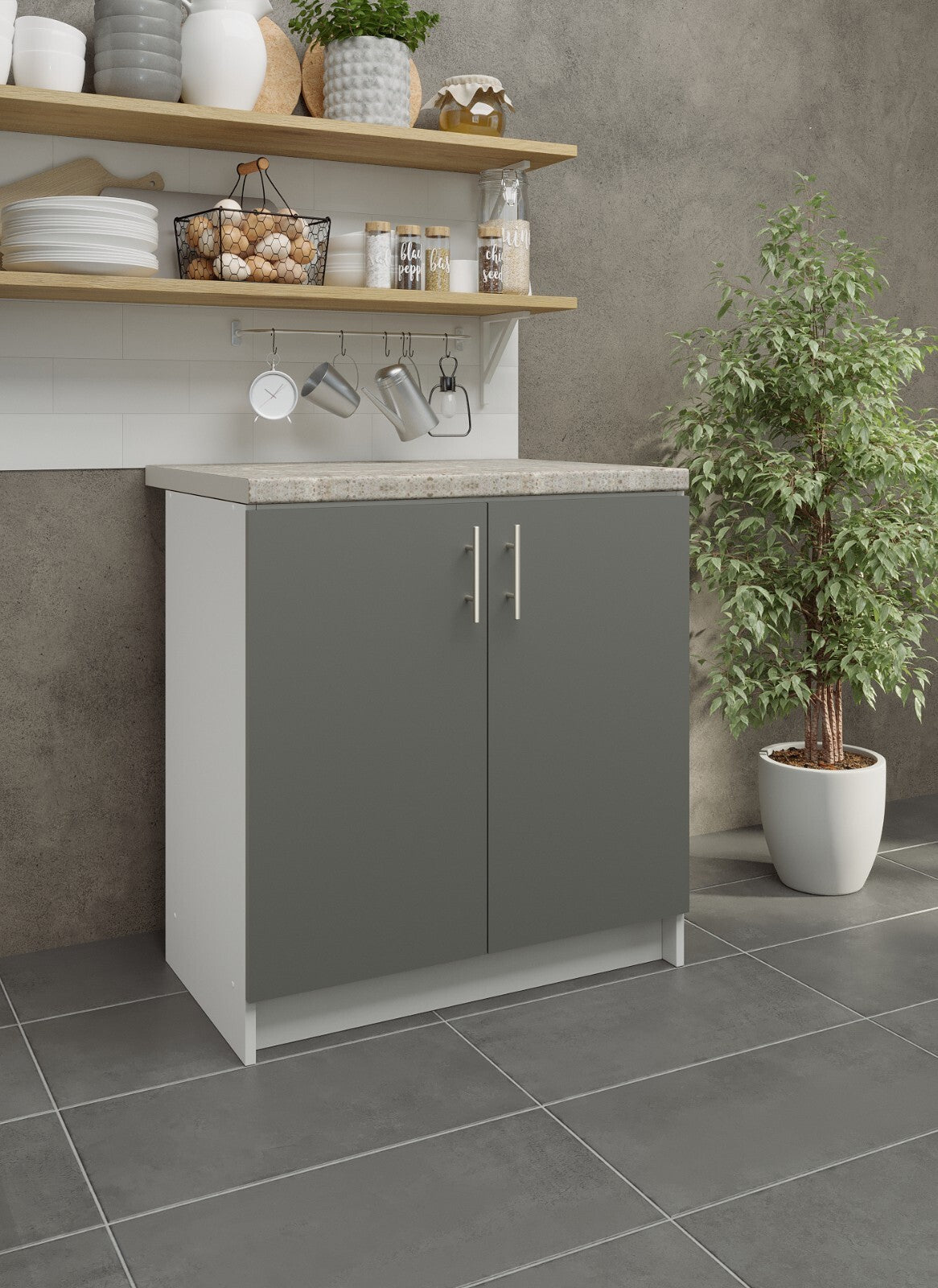 JD Greta Fixed Height Kitchen Base Unit 800mm - Grey Matt (With Worktop)